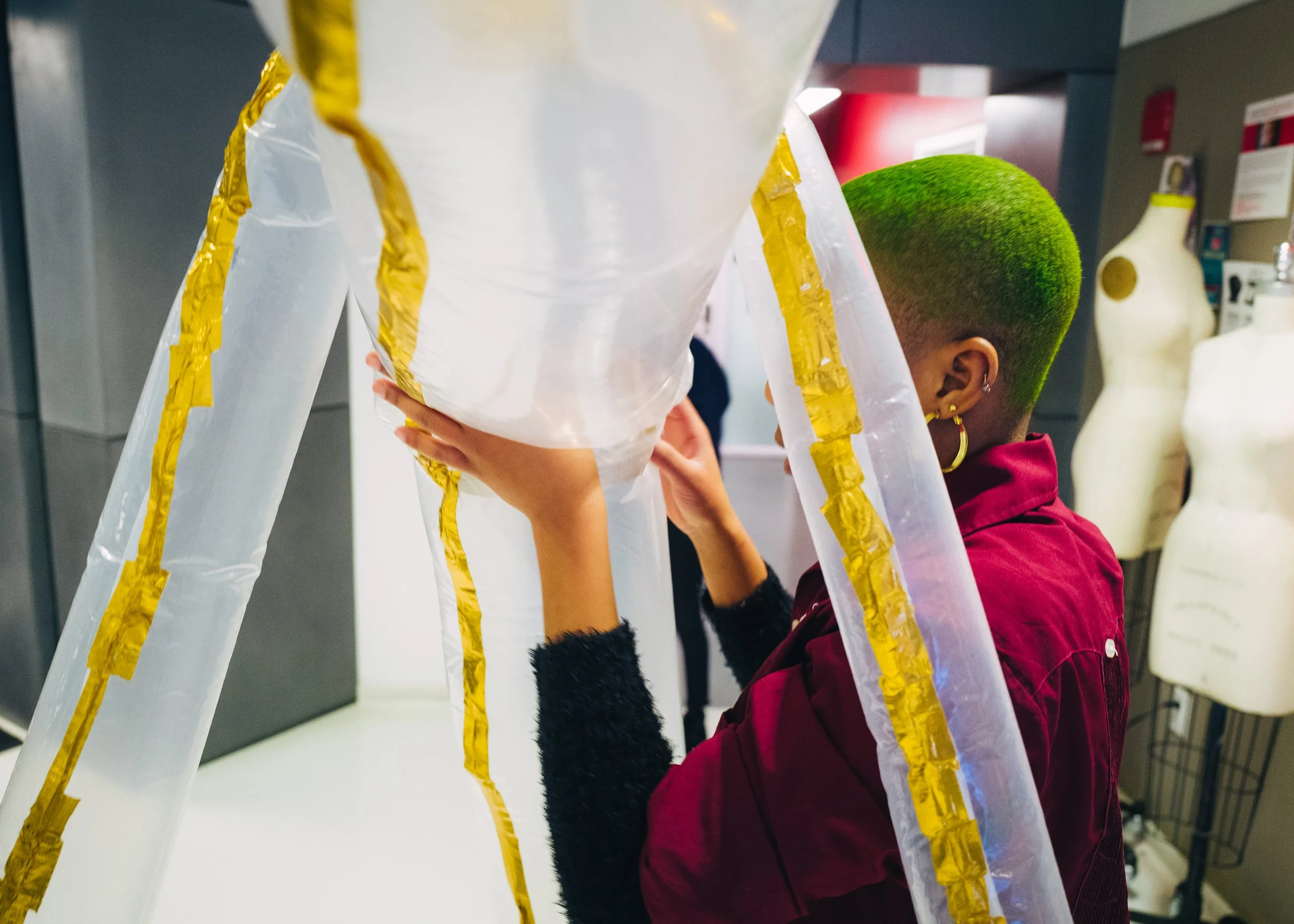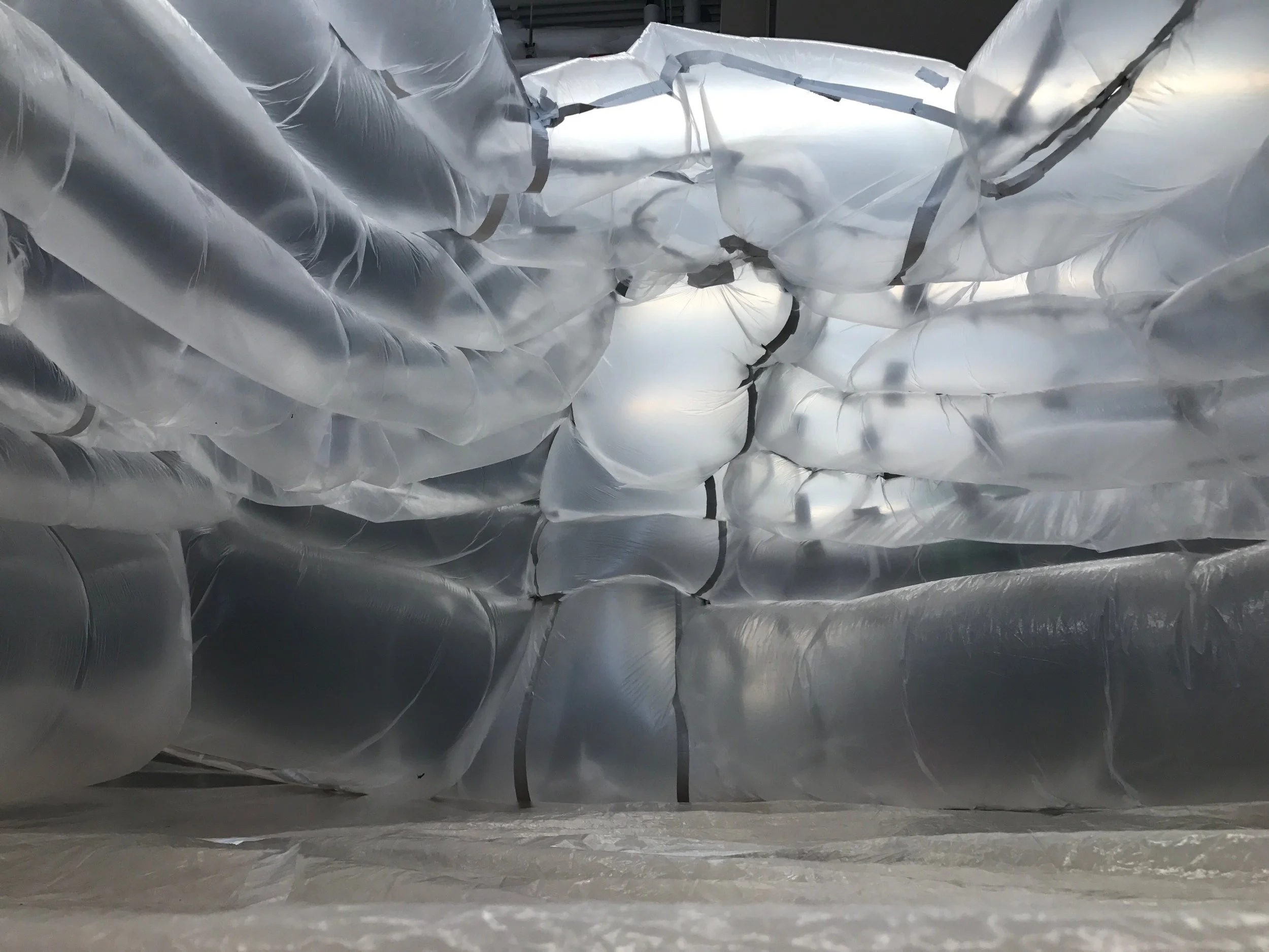 The inflatables project happens in class as an exercise with a team. Students are thrust into a project with a deadline after a lecture on sustainable, portable structures. Working together they have to house the class with limited materials and time. This is not an exercise in beauty or craft but one of conceptualization and realization as a group effort. We then spend time considering the formal qualities and how the techniques learned can extend into future works for them.